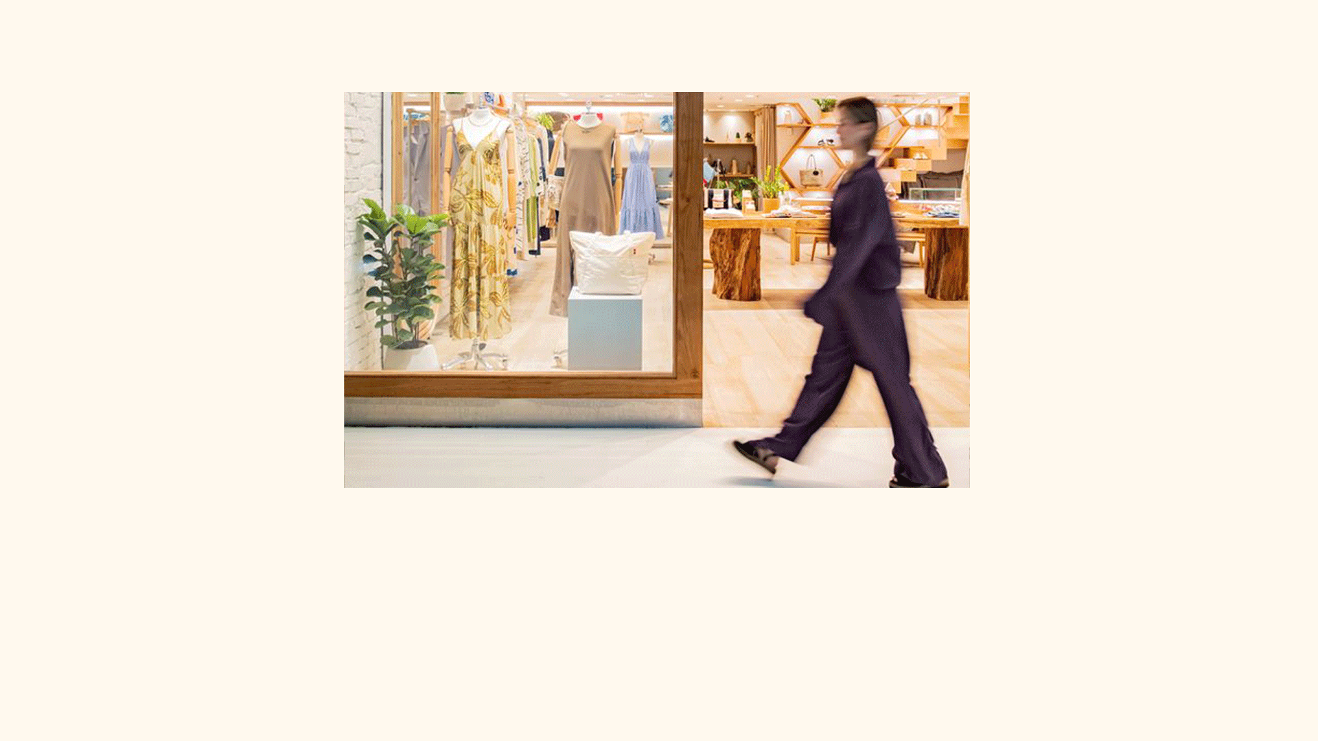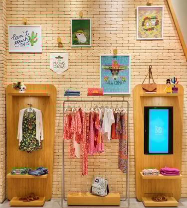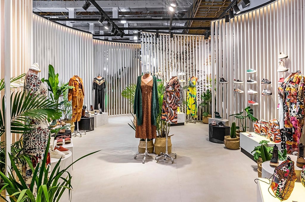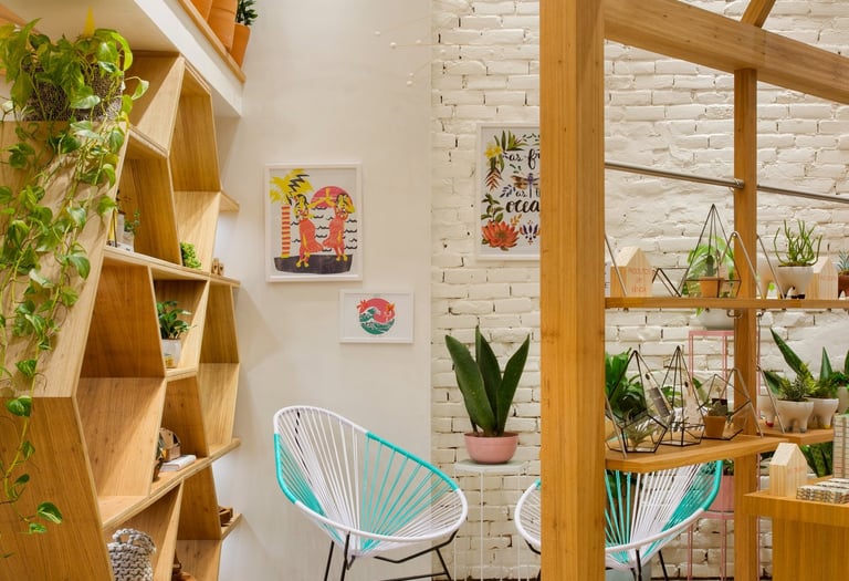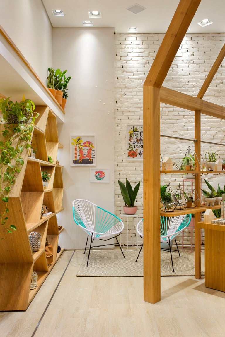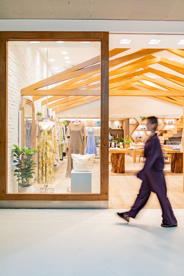 A fachada é marcante e sua leveza em formas orgânicas é um convite para entrar e descobrir os lindos produtos da marca leve, funcional e encantadora.