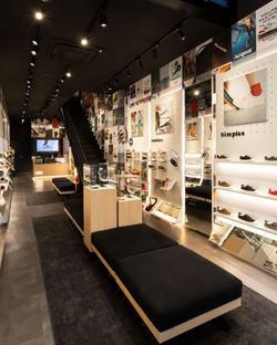 A área de exposição é generosa e comporta um mix extenso com respiro e de forma bem organizada. Áreas de estar/ experimentação confortáveis e um espaço para acessórios especial.